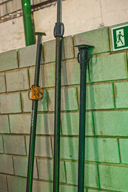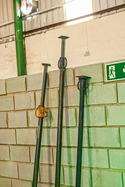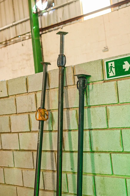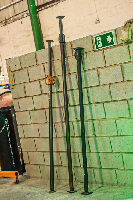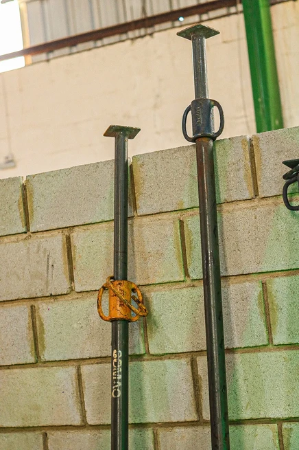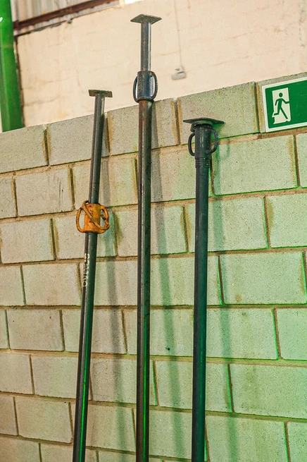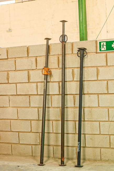 Elemento ajustável de apoio para escorar formas e lajes provisoriamente, garantindo estabilidade durante concretagem e cura.